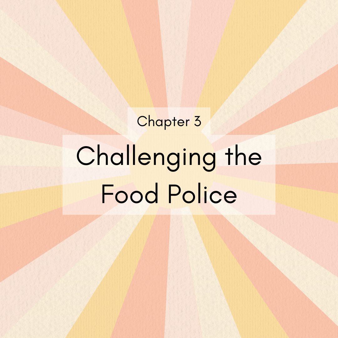 Reflect on what beliefs about food you have been exposed to by the Food Police, and break away from those beliefs by tuning into your values around food.